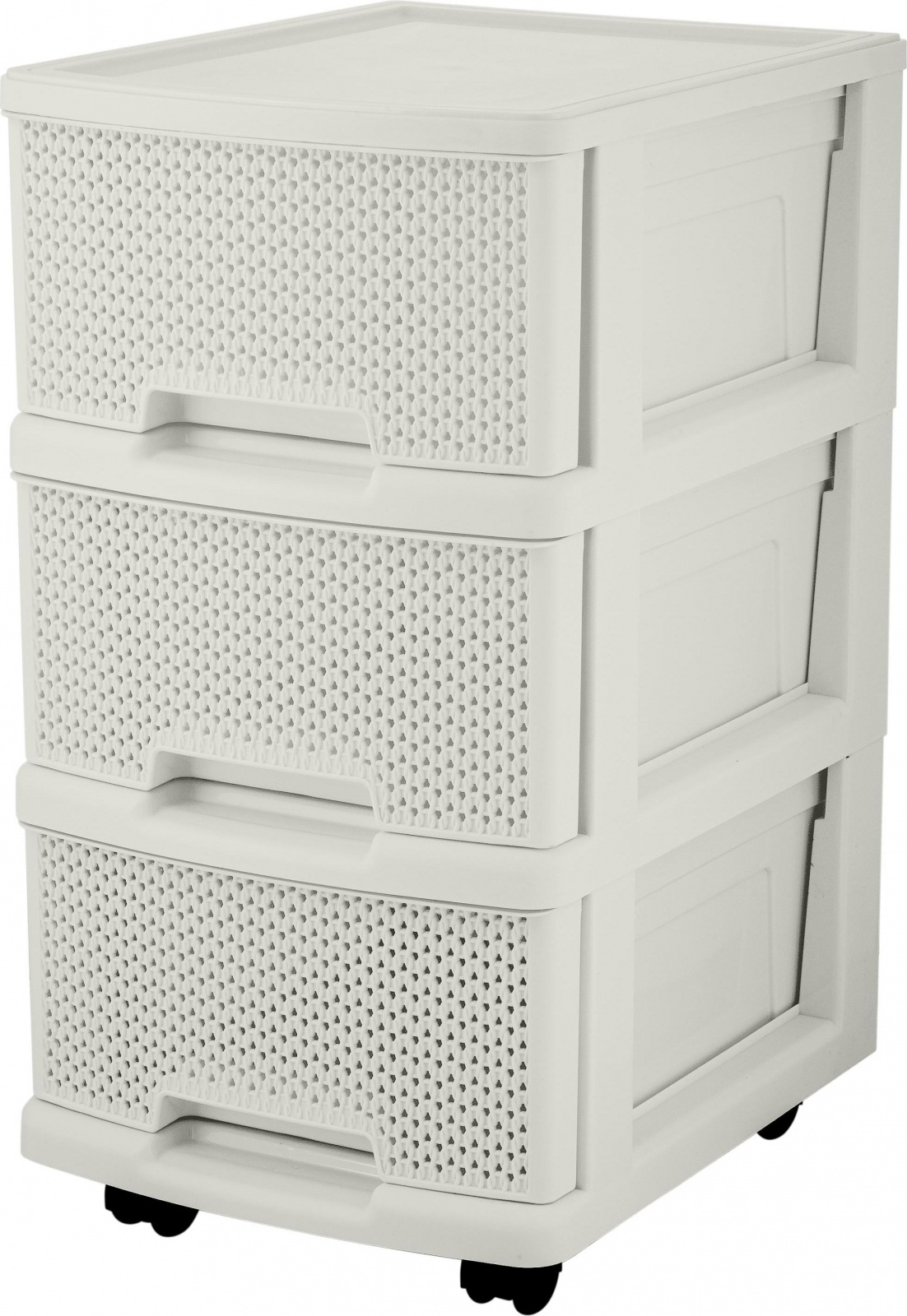 Комод Keeplex Ajur с ящиками на колесиках трехсекционный компакт 37х30х56,3см идеально подойдет для организации хранения в гостиной, ванной комнате, прихожей или кухне. Компактный размер позволяет удобно разместить комод в небольших помещениях. По ширине идеально подходит под формат бумаги А4. Спереди остается еще ~3 см для захвата стопки бумаги, и чтобы вынуть ее. Колесики для удобного перемещения комода во время уборки или перепланирования пространства. Уютный декор Ajur - ажурная фактура вязания будет прекрасным дополнением к другим изделиям из коллекции бренда Keeplex. Самое ажурное и легкое плетение в стиле вязания из всех, представленых на рынке. Габариты в собранном виде: 370х300х563 мм.