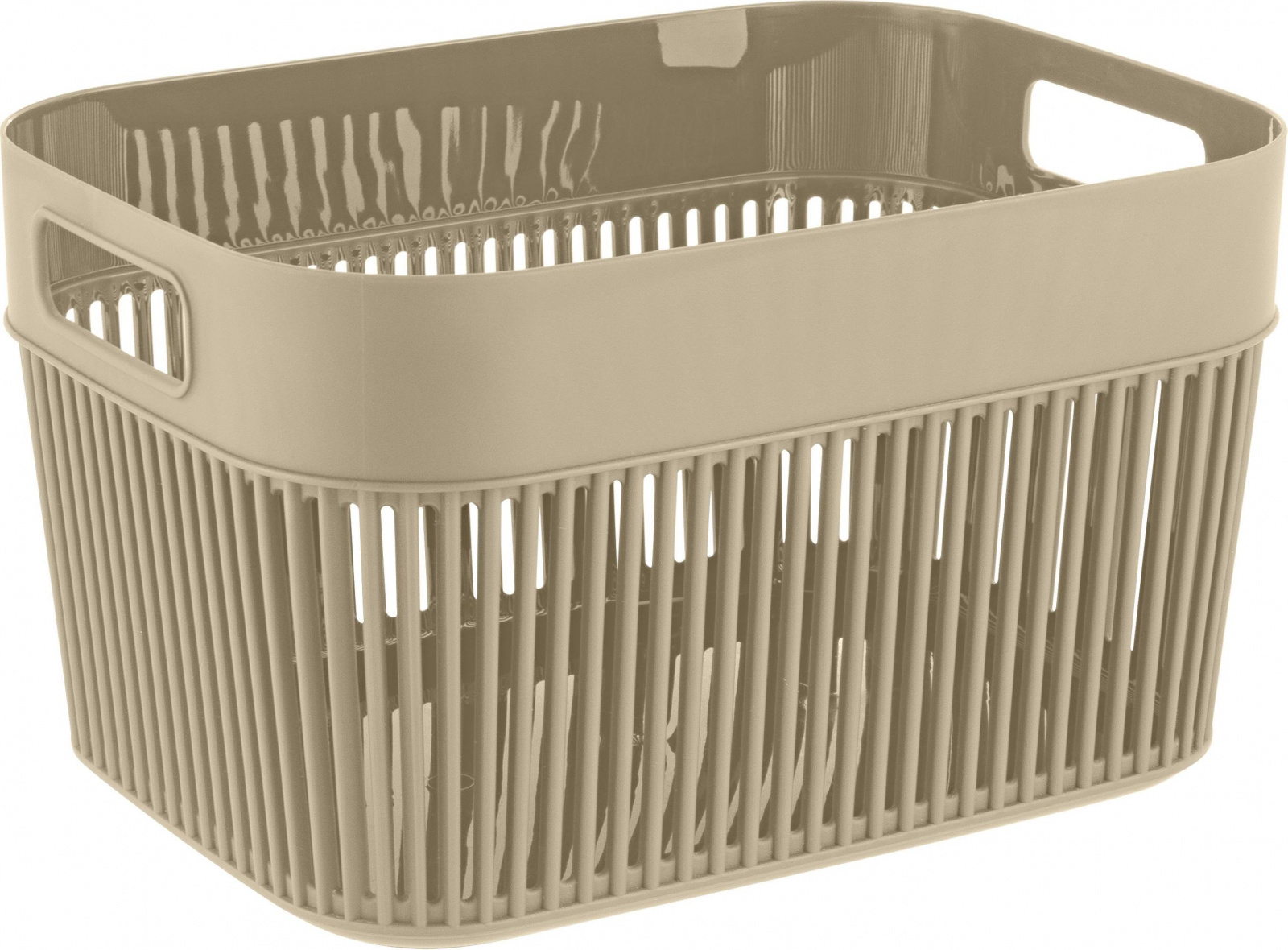 Корзина Keeplex 5л с ручками — стильное решение для хранения в ванной, на кухне или в гостиной. Изготовлена из пищевого пластика, устойчива к влаге и легко моется. Подходит для фруктов, сладостей, белья, косметики. Скругленные края ручки не будут врезаться в ладонь. Прочный и легкий корпус с вертикальными рейками обеспечивает проветривание содержимого. Минималистичный дизайн с прямыми линиями, мягкими углами и природными оттенками украсит любой интерьер. Матовое soft-touch покрытие создает приятные тактильные и визуальные эффекты. В коллекции представлены: прямоугольные корзины 3л, 5л, 12л; квадратные корзины 9,5л и 19л. Габариты: 248х182х144 мм.