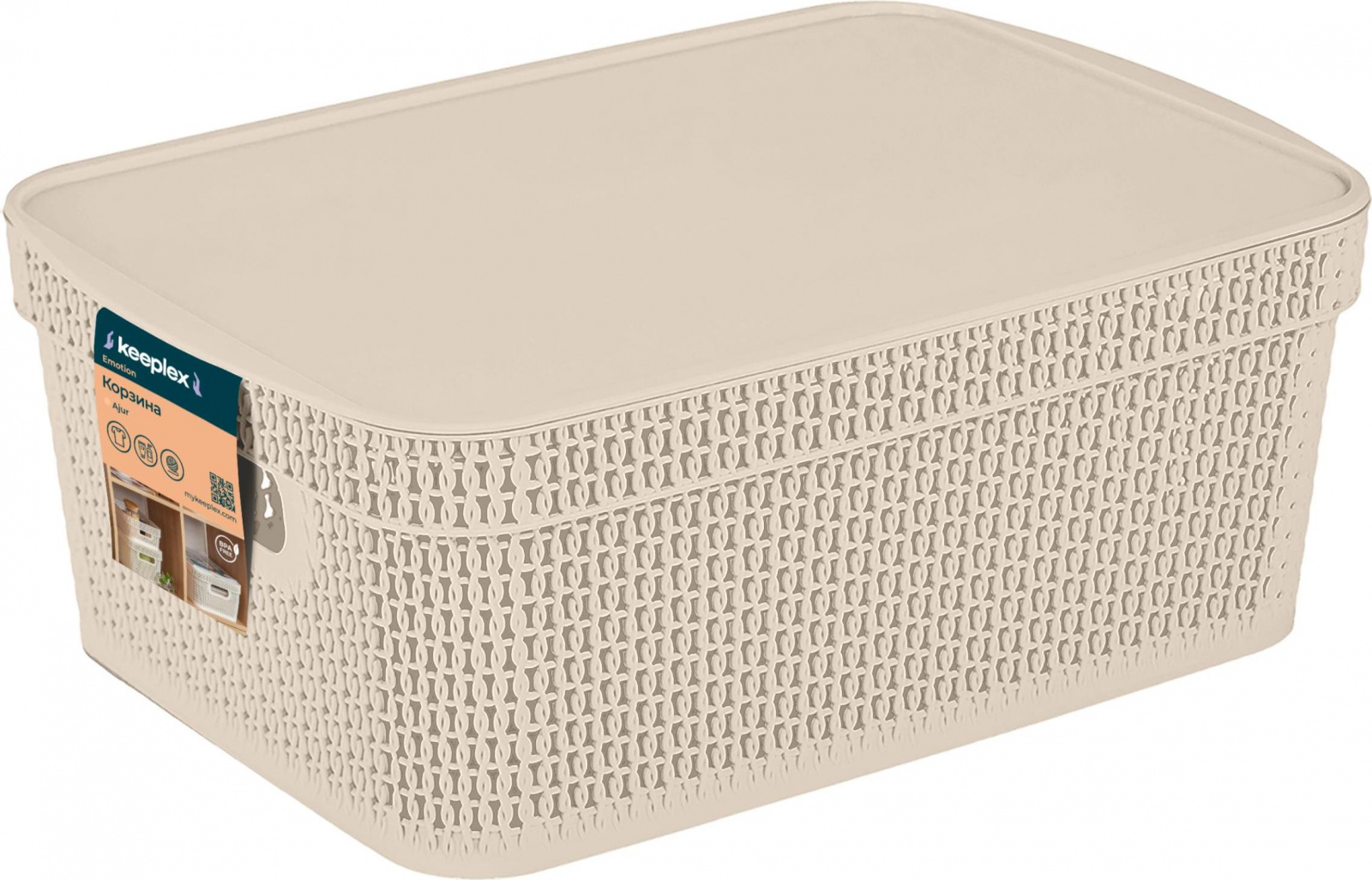 Корзина Keeplex Вязь 11л с крышкой — изящное решение для хранения в ванной, на кухне или в гостиной. Изготовлена из пищевого пластика, устойчива к влаге и легко моется. Подходит для фруктов, сладостей, белья, косметики. Скругленные края ручки не будут врезаться в ладонь. Прочный и легкий корпус с фактурой, имитирующей вязаное плетение, обеспечивает проветривание содержимого. Плоская крышка позволяет удобно установить корзины одну на другую, организовав полноценную систему хранения. Входит в коллекцию Вязь — сочетается с другими предметами интерьера в едином стиле. Габариты: 380х270х143 мм.