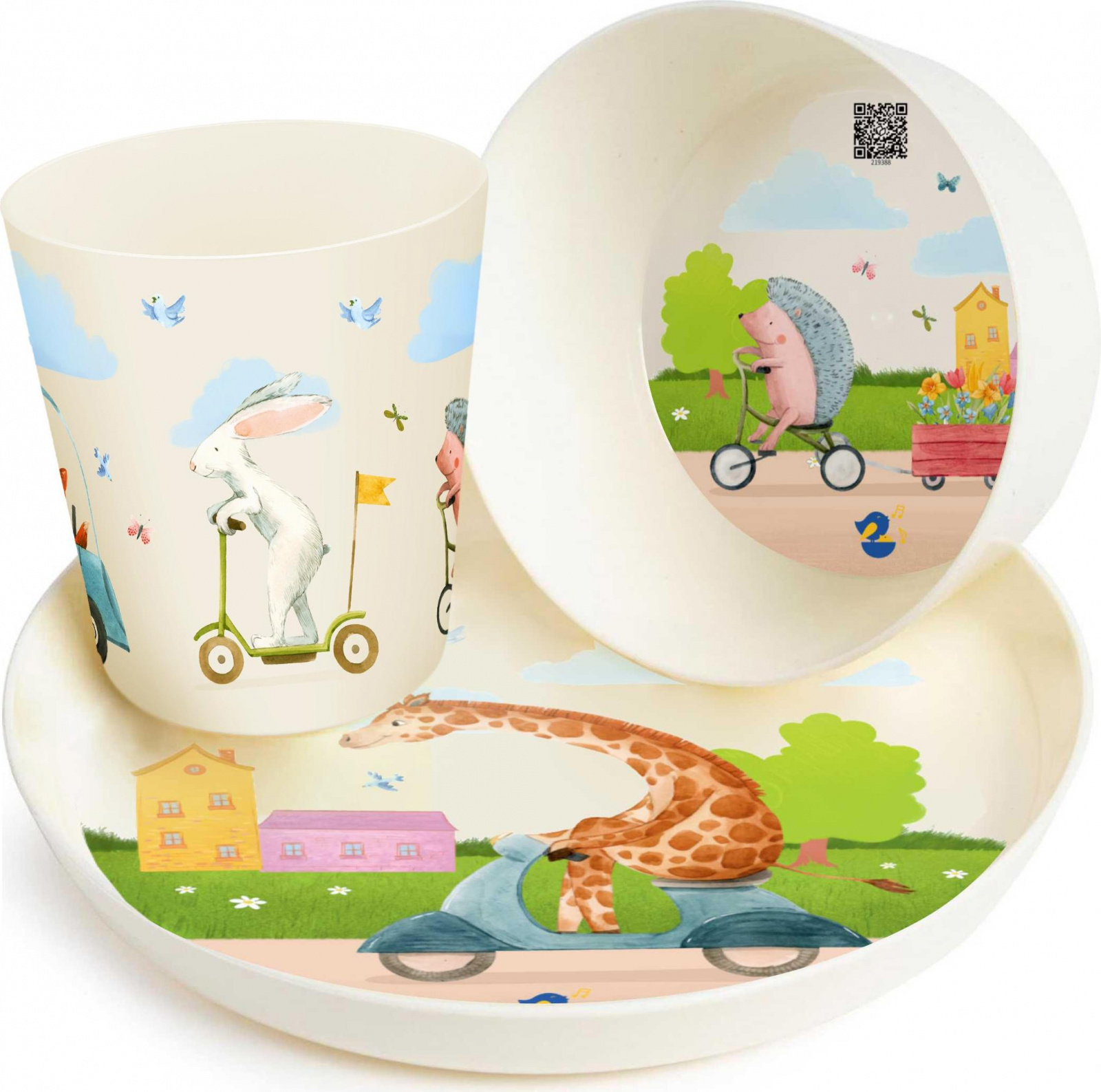 Набор детской посуды Plast Team Baby Follow Me, тарелка, миска, стаканчик, 2 ложки, 187х187х88 (PT1600)