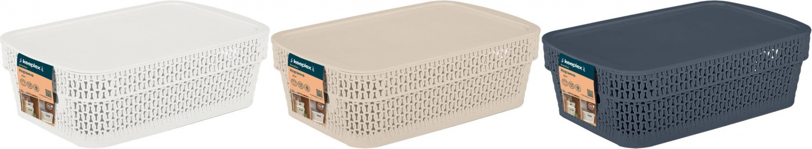 Корзина для хранения Keeplex коллекция Ajur, плетеная, с крышкой, 3л, прямоугольная, 281х185х89 (KL4111)