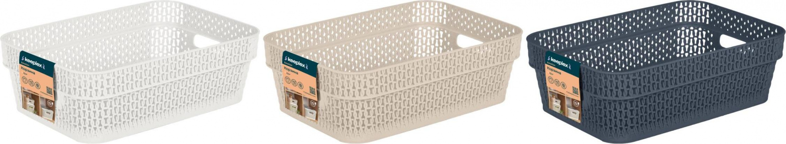 Корзина для хранения Keeplex коллекция Ajur, плетеная, с ручками, 3л, прямоугольная, 271х183х87 (KL4110)