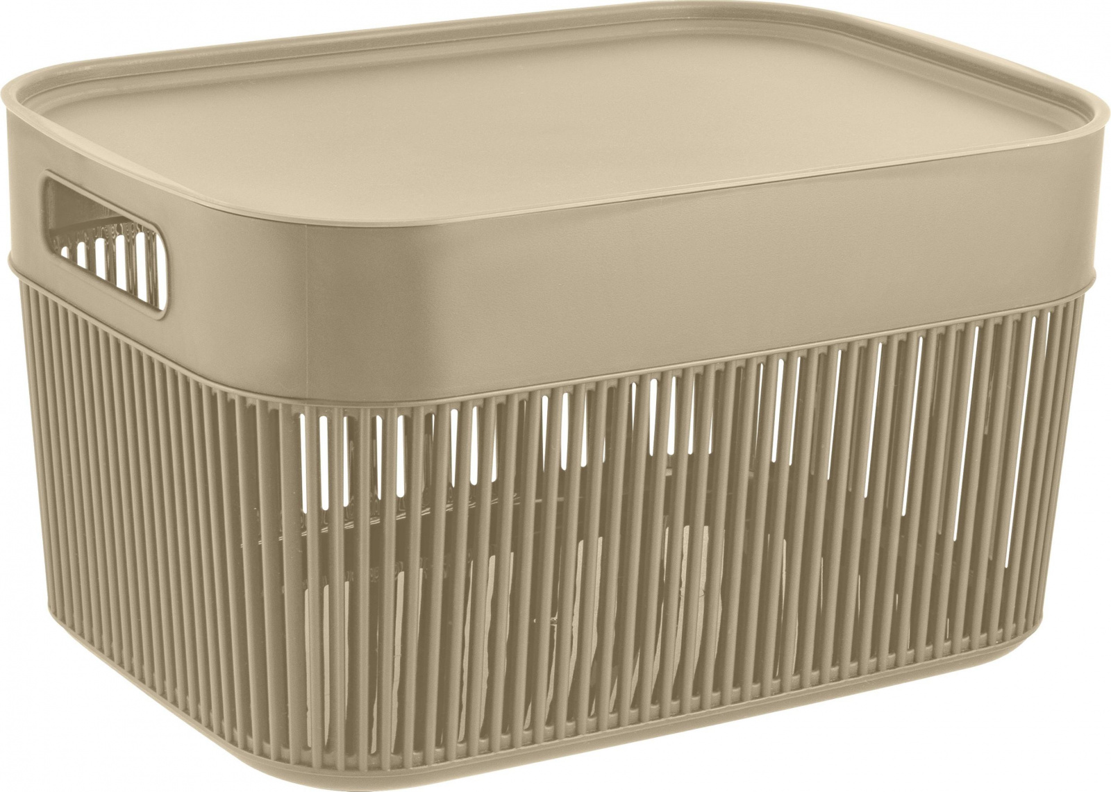 Корзина Keeplex 12л с крышкой — стильное решение для хранения в ванной, на кухне или в гостиной. Изготовлена из пищевого пластика, устойчива к влаге и легко моется. Подходит для фруктов, сладостей, белья, косметики. Скругленные края ручки не будут врезаться в ладонь. Прочный и легкий корпус с вертикальными рейками обеспечивает проветривание содержимого. Плоская крышка позволяет удобно установить корзины одну на другую, организовав полноценную систему хранения. Минималистичный дизайн с прямыми линиями, мягкими углами и природными оттенками украсит любой интерьер. Матовое soft-touch покрытие создает приятные тактильные и визуальные эффекты. В коллекции представлены: прямоугольные корзины 3л, 5л, 12л; квадратные корзины 9,5л и 19л. Габариты: 348х250х196 мм.